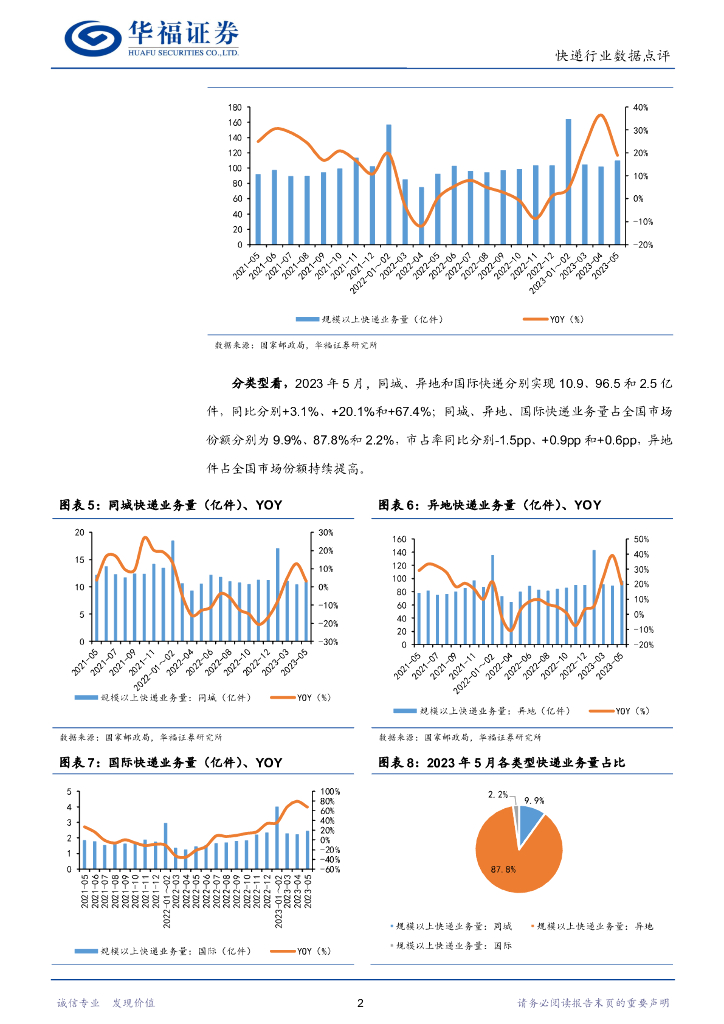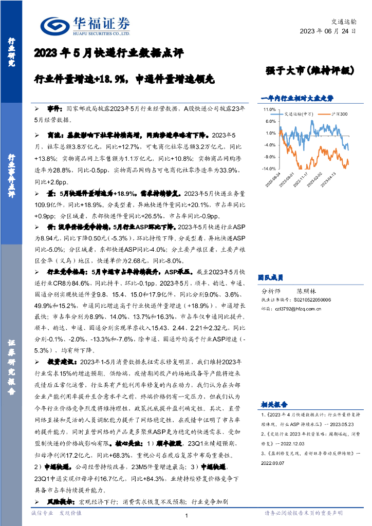 华福证券:2023年5月快递行业数据点评:行业件量增速+18.9%,申通件量增速领先.pdf