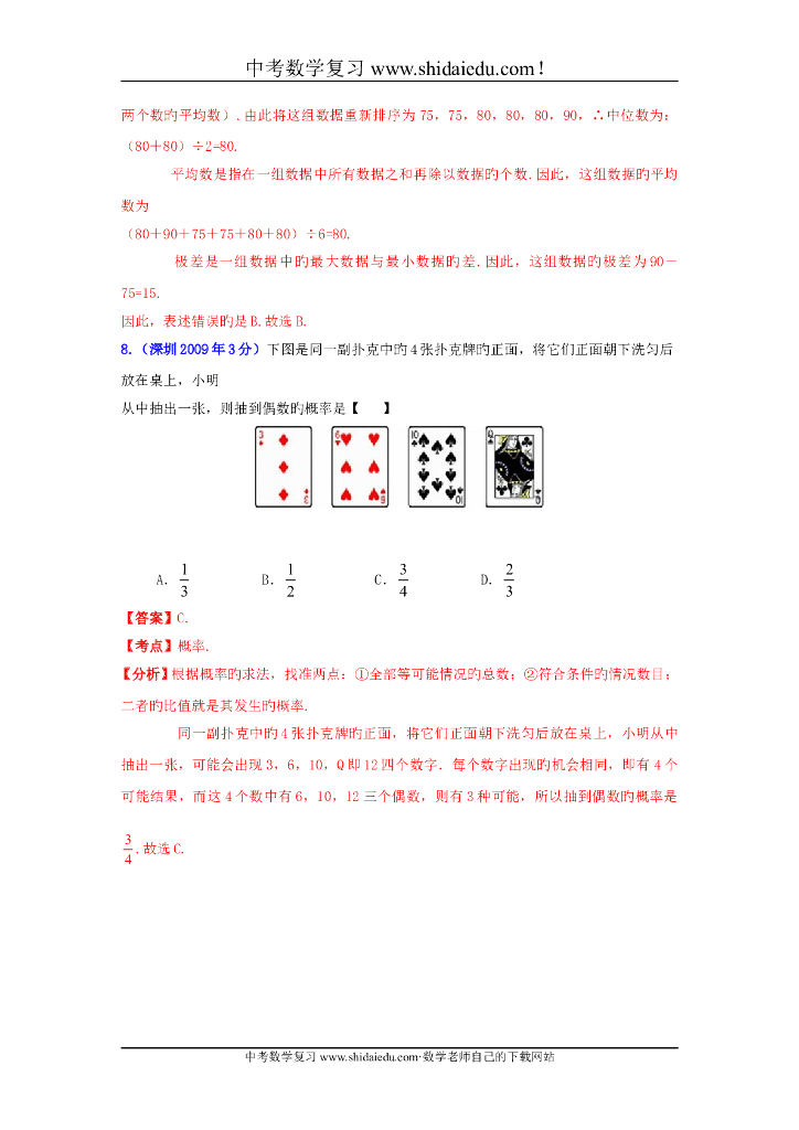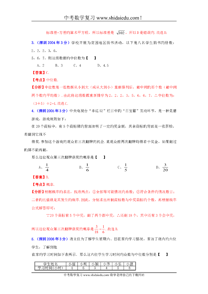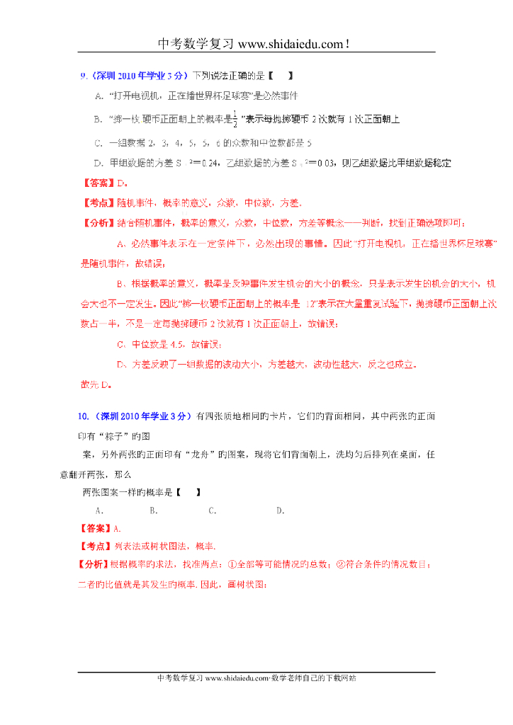 广东深圳-中考数学试题分类解析专题7:统计与概率.doc