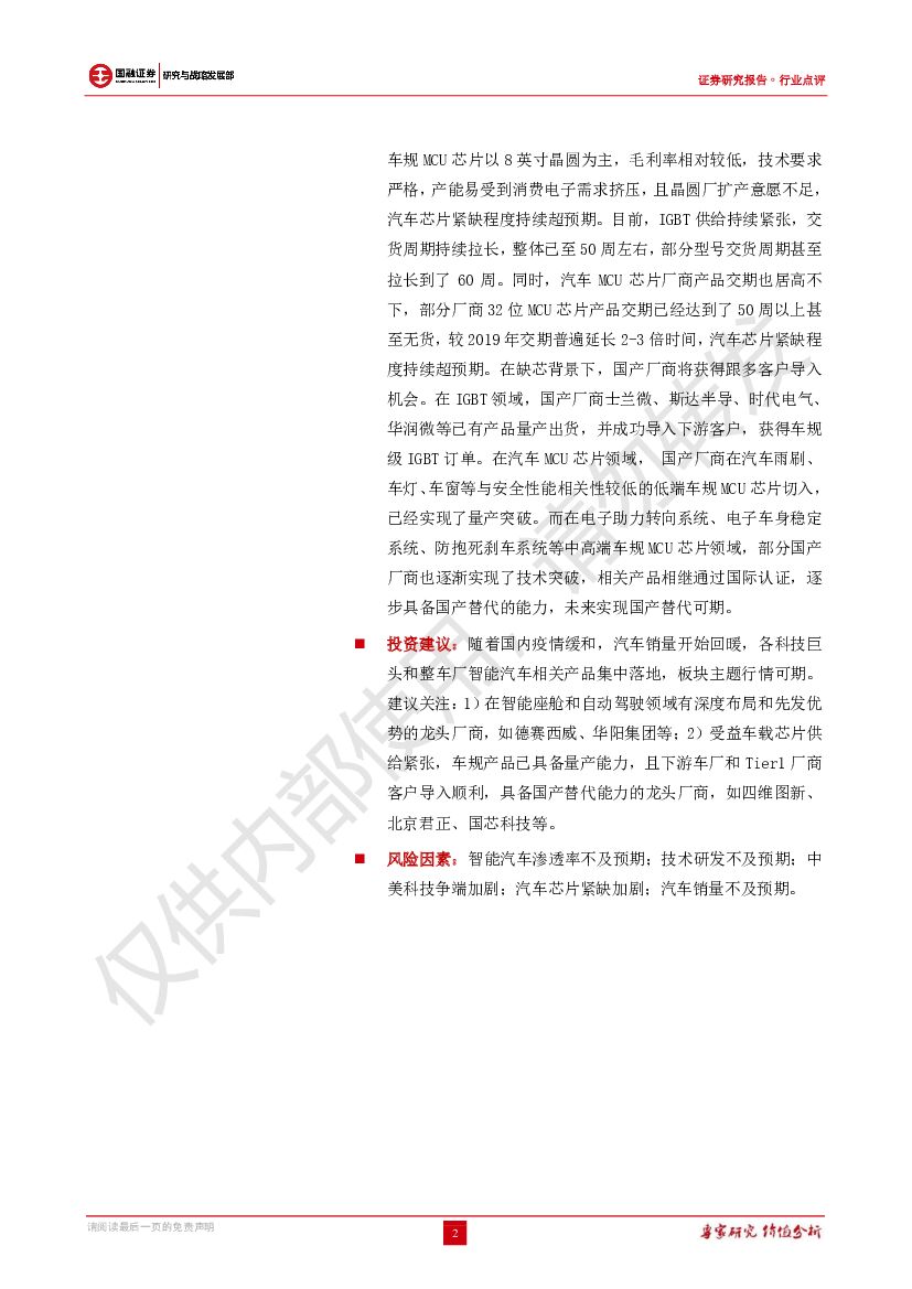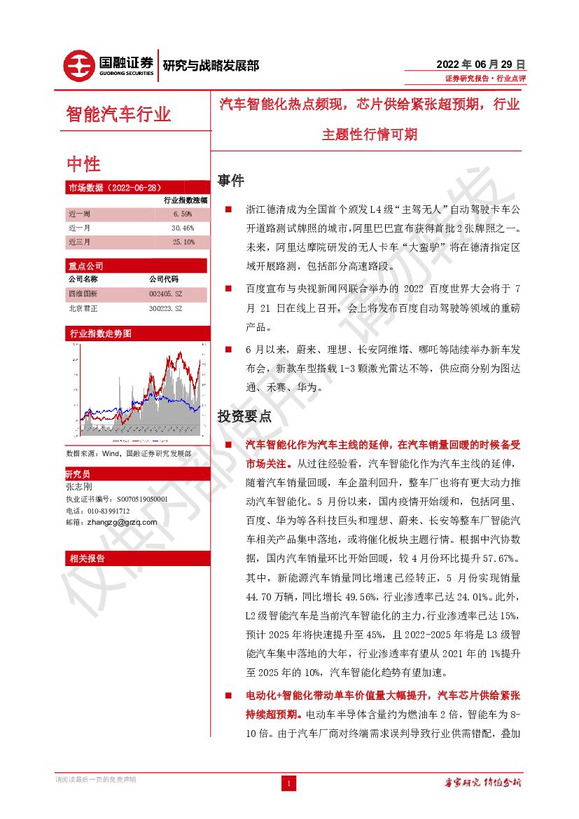 国融证券:智能汽车行业:汽车智能化热点频现,芯片供给紧张超预期,行业主题性行情可期.pdf