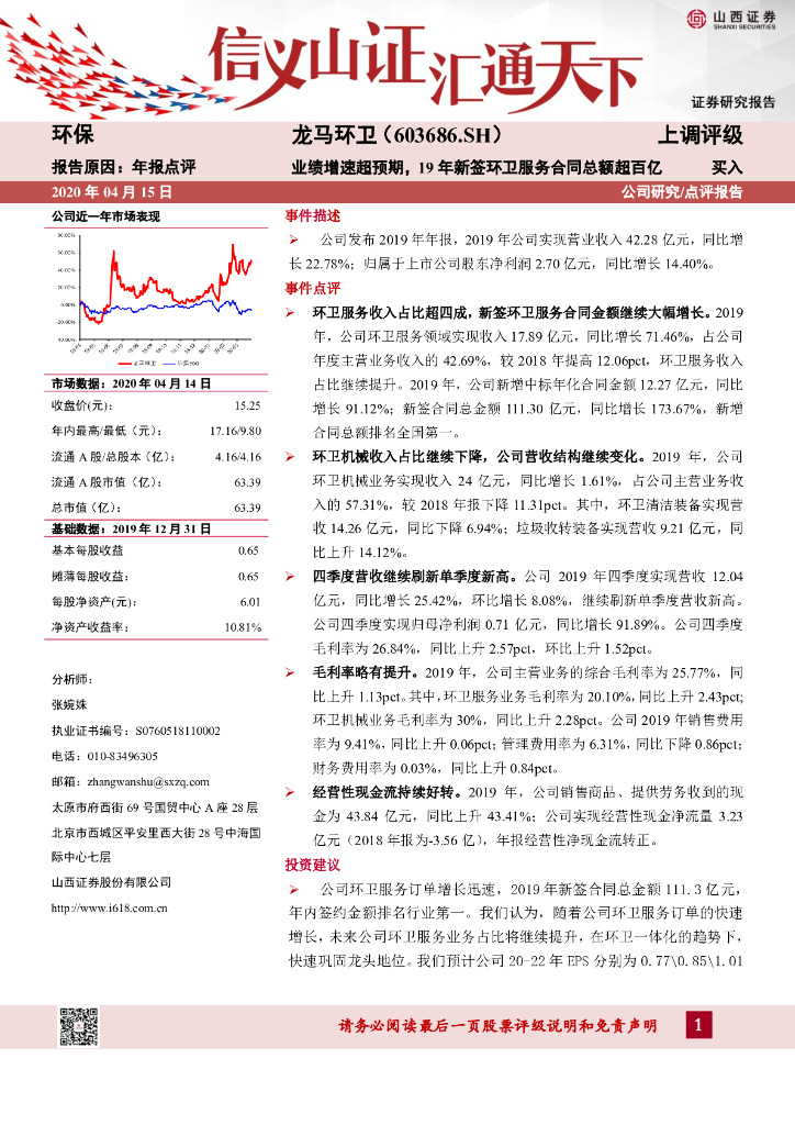 山西证券:龙马环卫(603686)-业绩增速超预期,19年新签环卫服务合同总额超百亿.pdf