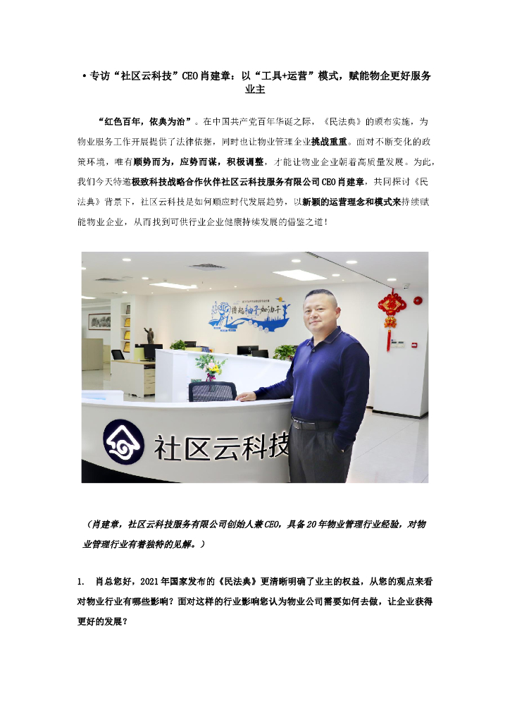 专访“社区云科技”CEO肖建章:以“工具+运营”.doc