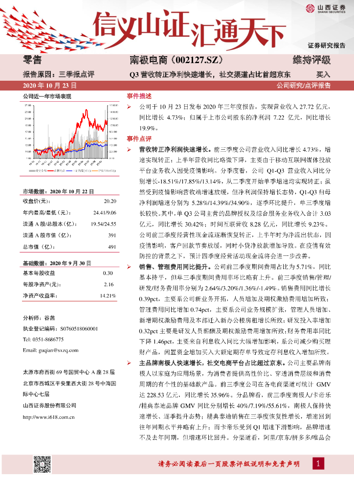 山西证券:南极电商(002127)-Q3营收转正净利快速增长,社交渠道占比首超京东.pdf