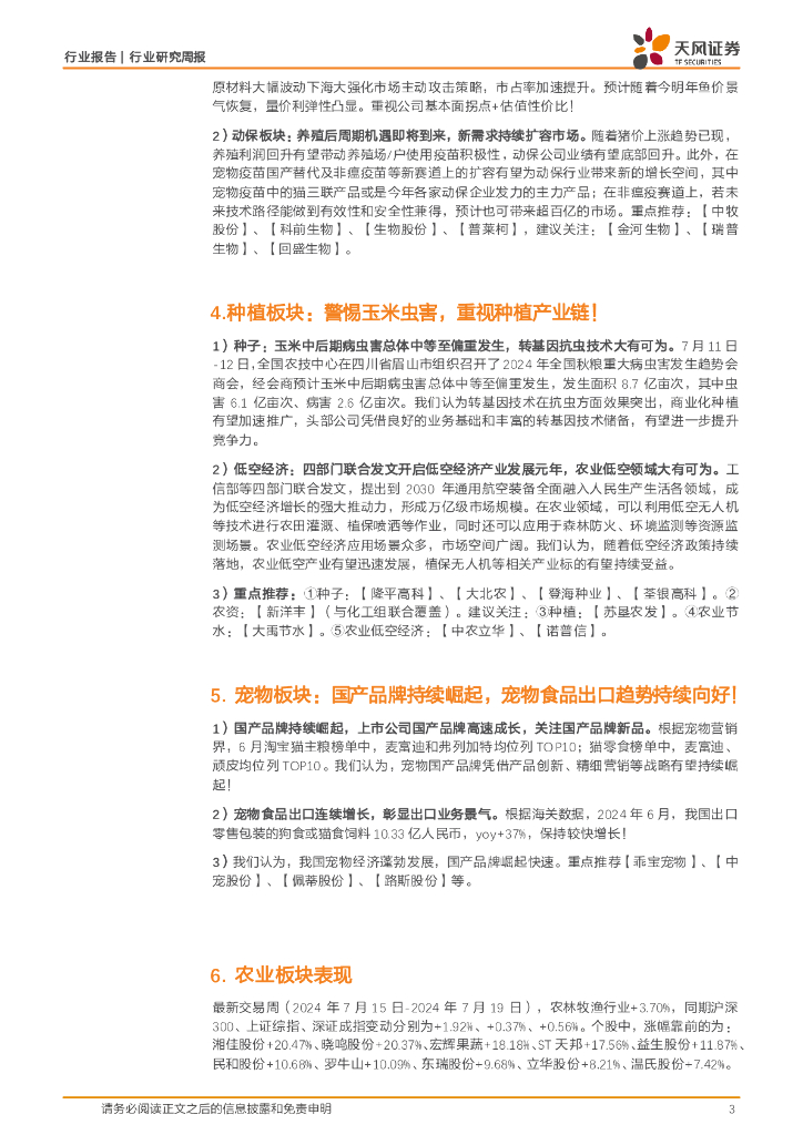 天风证券:农林牧渔行业2024年第28周报:巴西暂停对我国鸡肉出口,重视禽板块估值低位和弹性。.pdf
