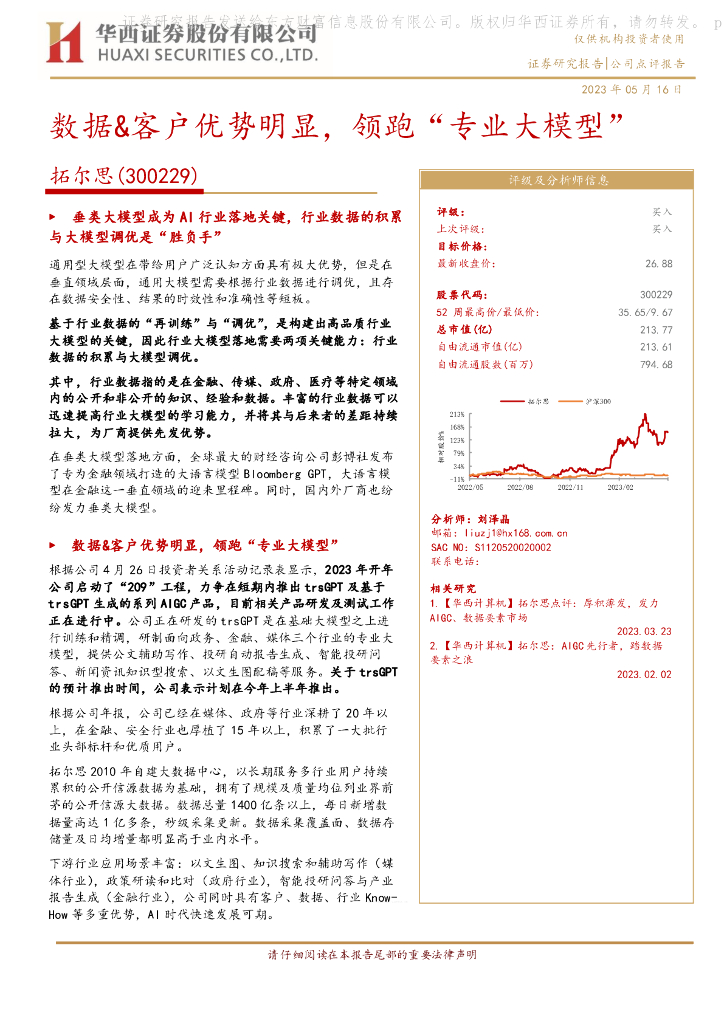 华西证券:拓尔思(300229)-数据&客户优势明显,领跑“专业大模型”.pdf