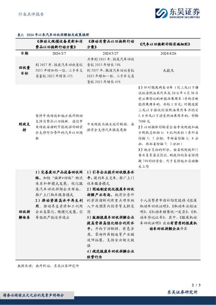 东吴证券:环保行业点评报告:以旧换新释放汽车回收拆解空间,行业规范头部公司竞争力重塑.pdf