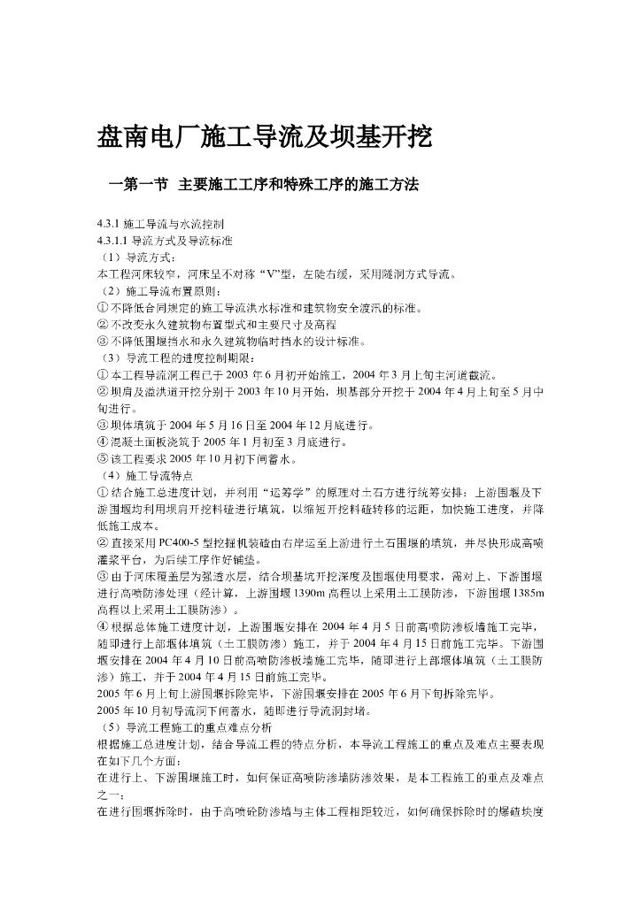[盘南]电厂施工导流及坝基开挖施工方案.doc