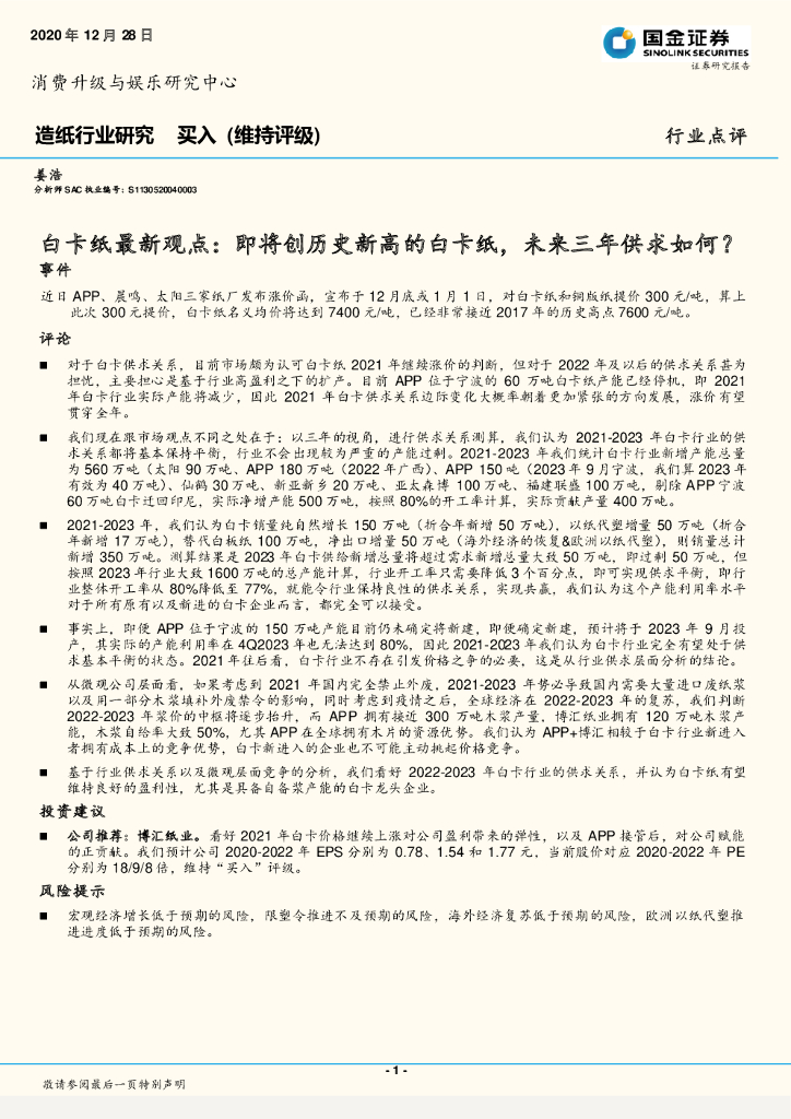国金证券:白卡纸最新观点:即将创历史新高的白卡纸,未来三年供求如何?.pdf