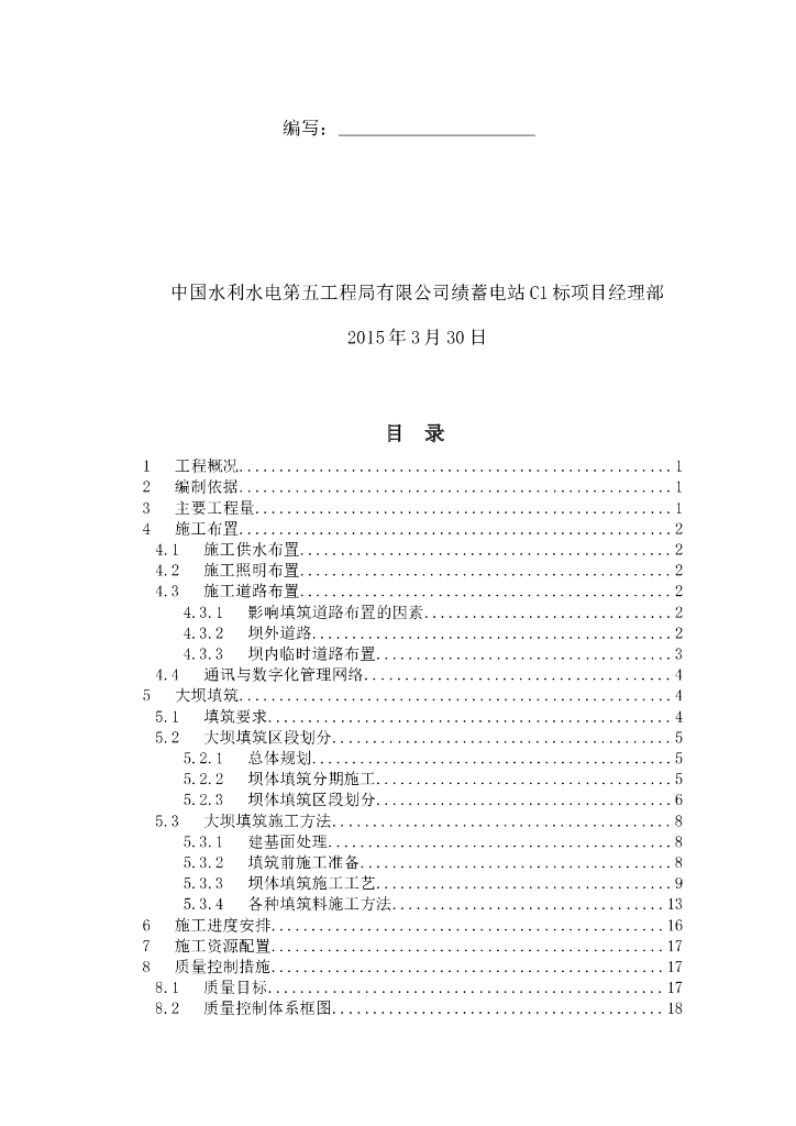 下水库大坝填筑施工方案(38页,清楚明了).doc