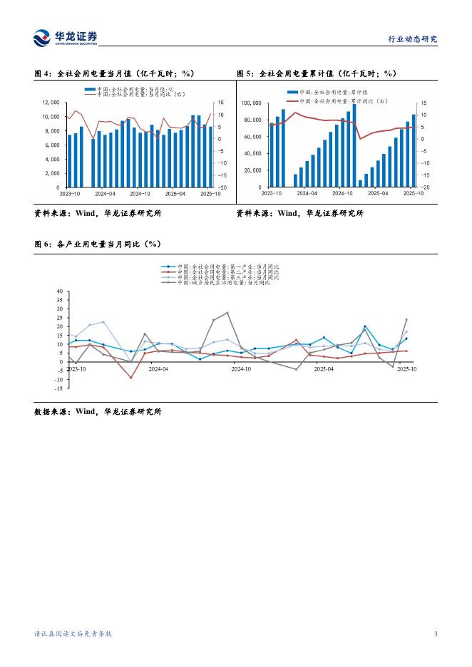 华龙证券:公用事业行业动态点评报告:10月电力数据,火电出力由降转增,用电增速同比+10.4%.pdf