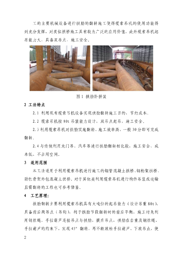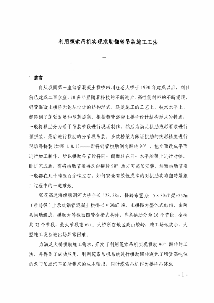利用缆索吊机实现拱肋翻转吊装施工工法10页.pdf