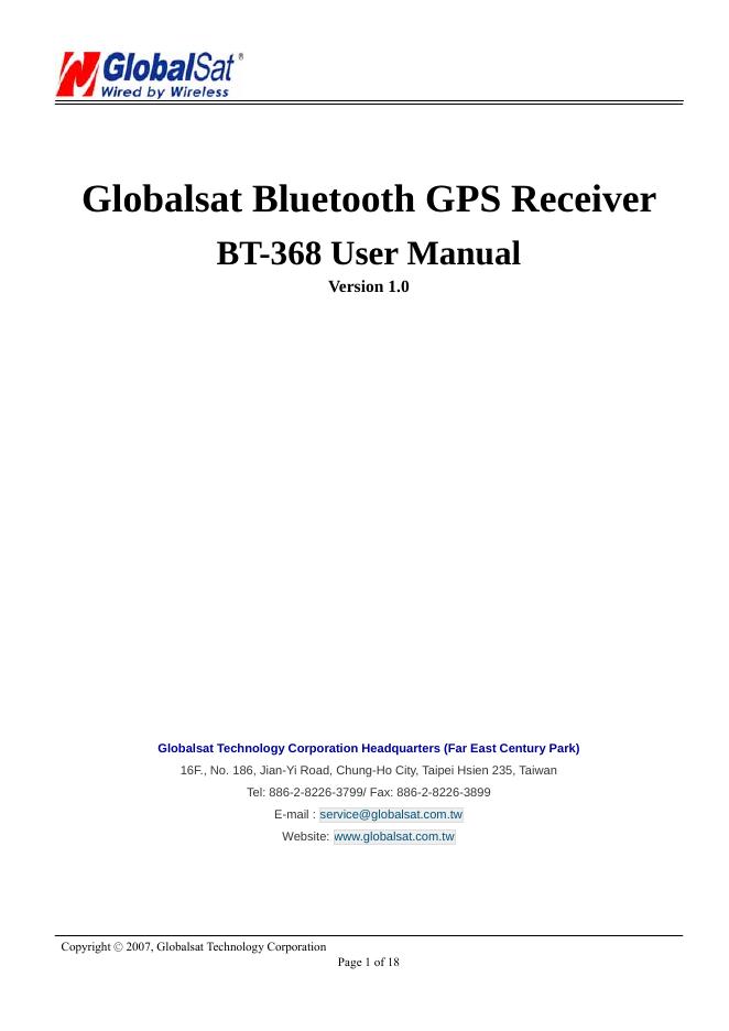 全球卫星 BT-368 蓝牙 GPS 接收器使用手册.pdf