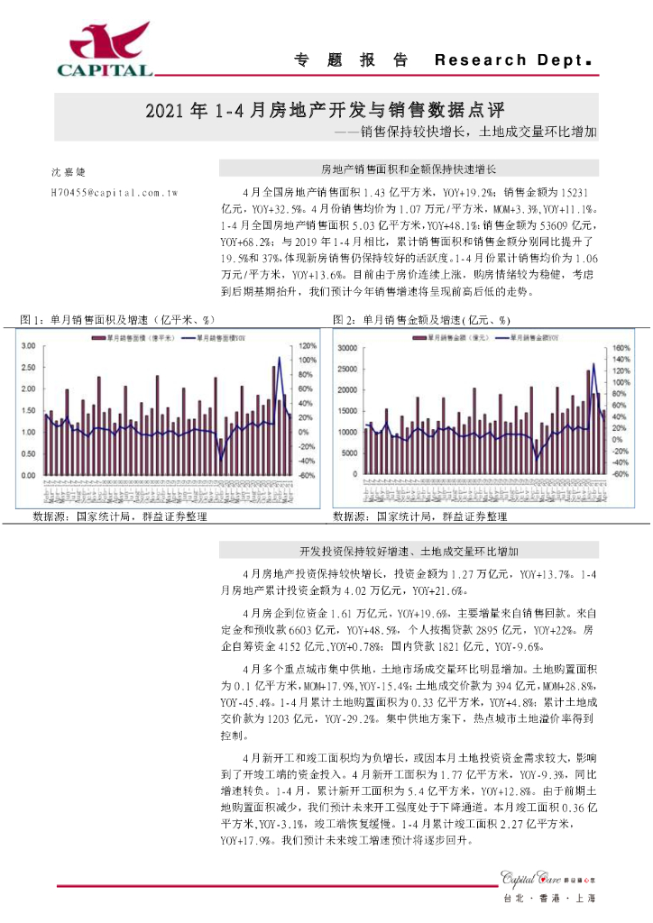 群益证券:2021年1-4月房地产开发与销售数据点评:销售保持较快增长,土地成交量环比增加.pdf