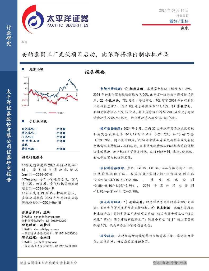 太平洋证券:家电行业周报:美的泰国工厂光伏项目启动,比依即将推出制冰机产品.pdf