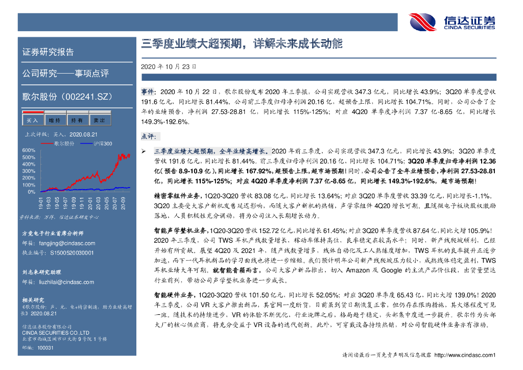 信达证券:歌尔股份(002241)-三季度业绩大超预期,详解未来成长动能.pdf