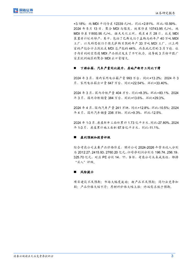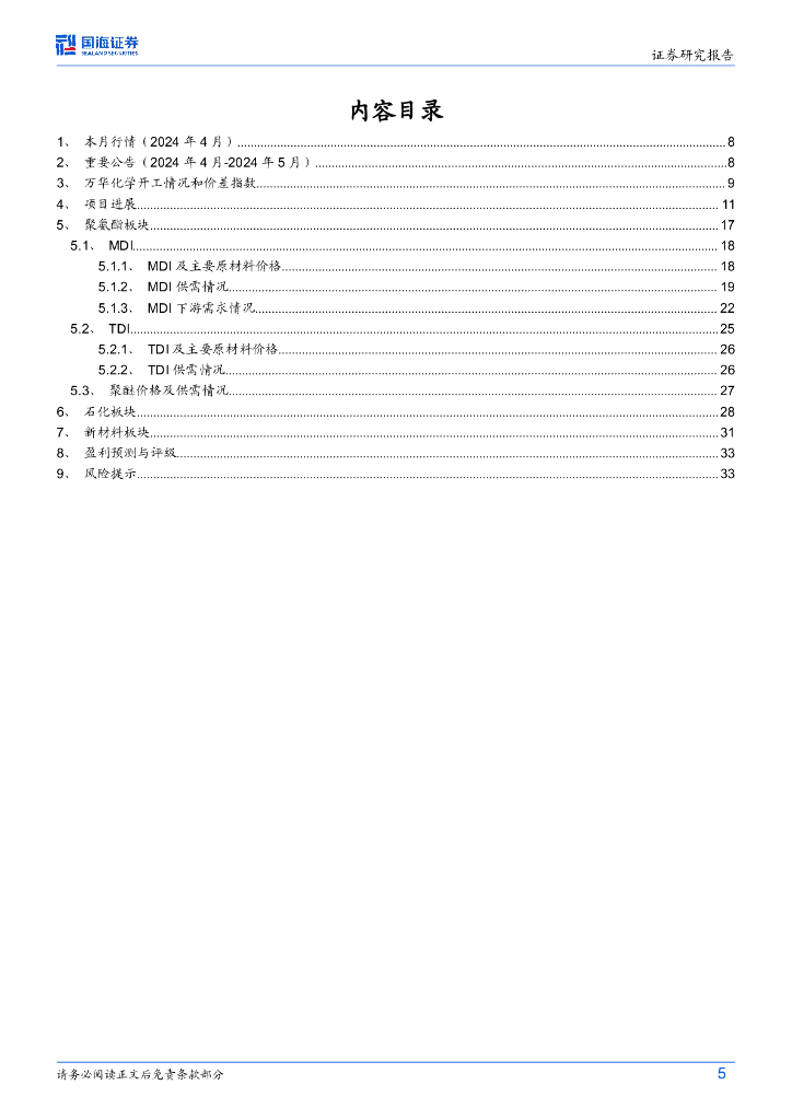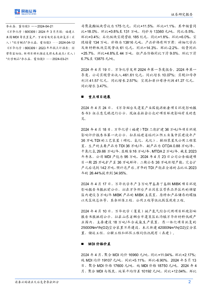 国海证券:万华化学(600309)-2024年4月月报:福建MDI产能翻倍,TDI二期环评,欧美多套MDI装置低负荷运行.pdf