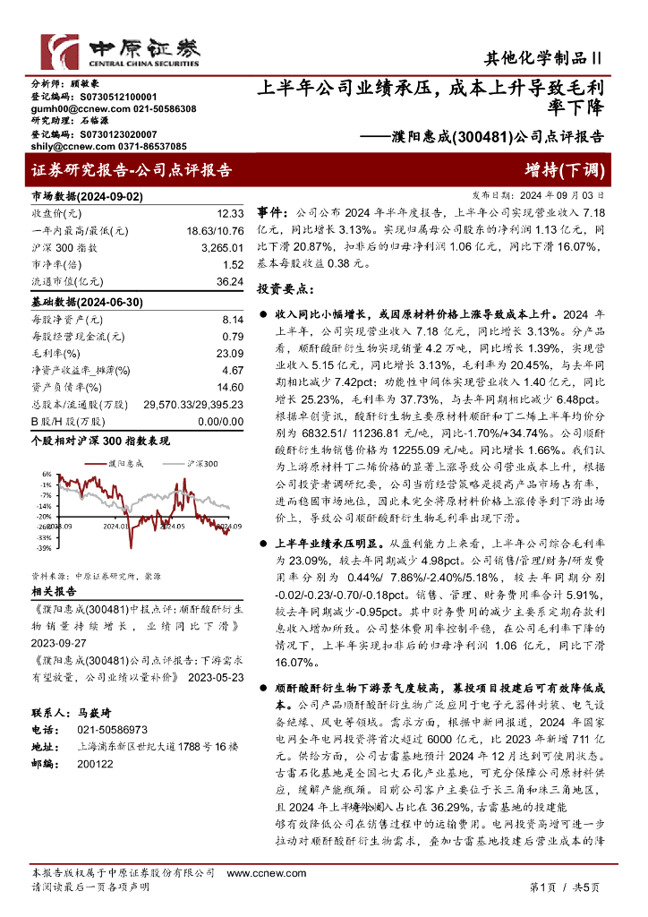 中原证券:濮阳惠成(300481)-公司点评报告:上半年公司业绩承压,成本上升导致毛利率下降.pdf
