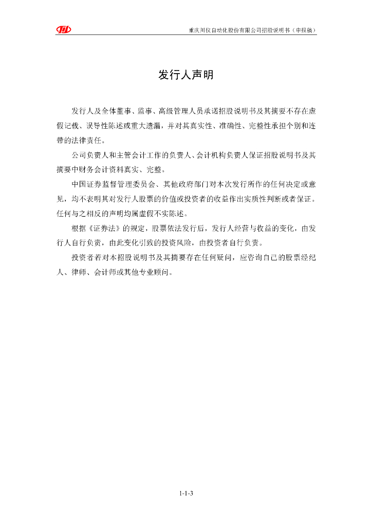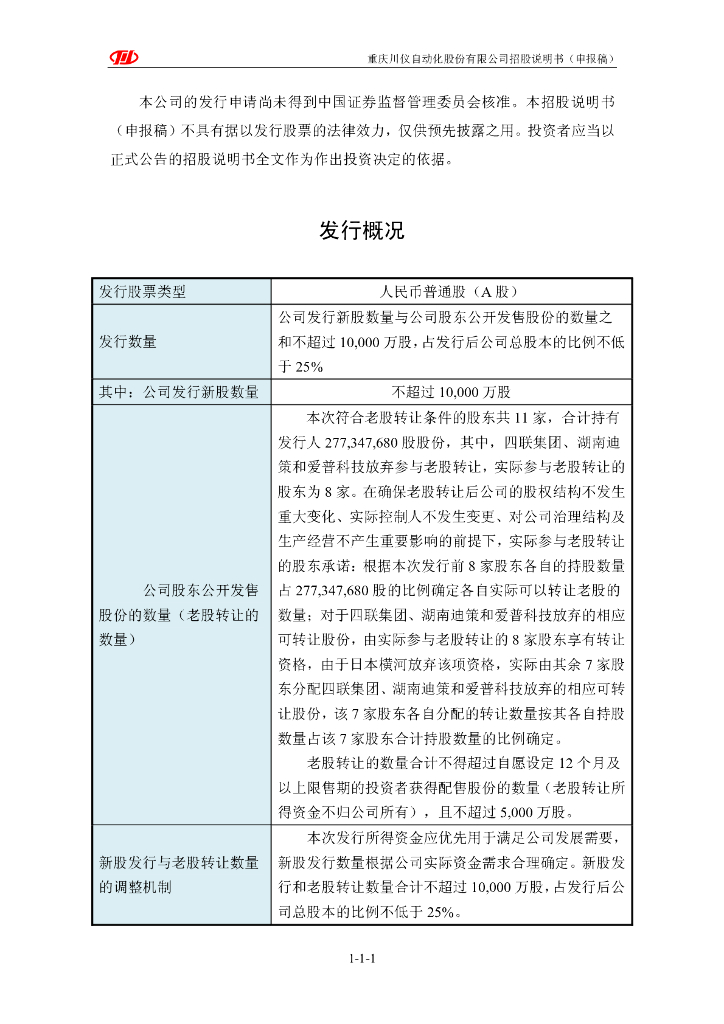 重庆川仪自动化股份有限公司上交所主板IPO上市招股说明书.pdf