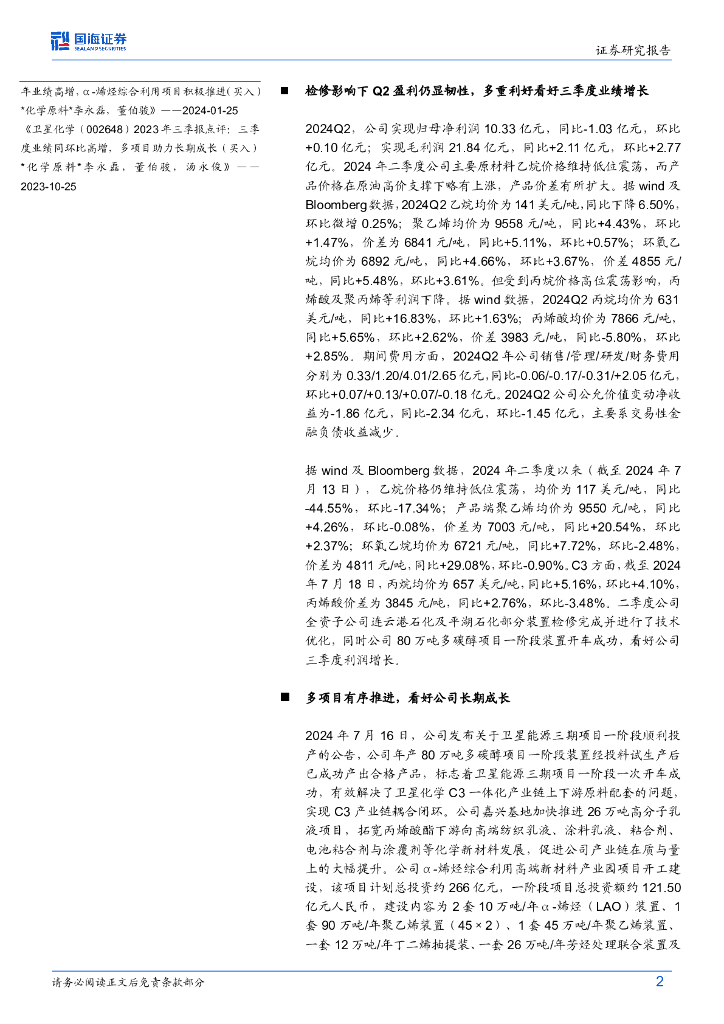 国海证券:卫星化学(002648)-2024年中报点评:上半年业绩同增,在建项目有序推进.pdf