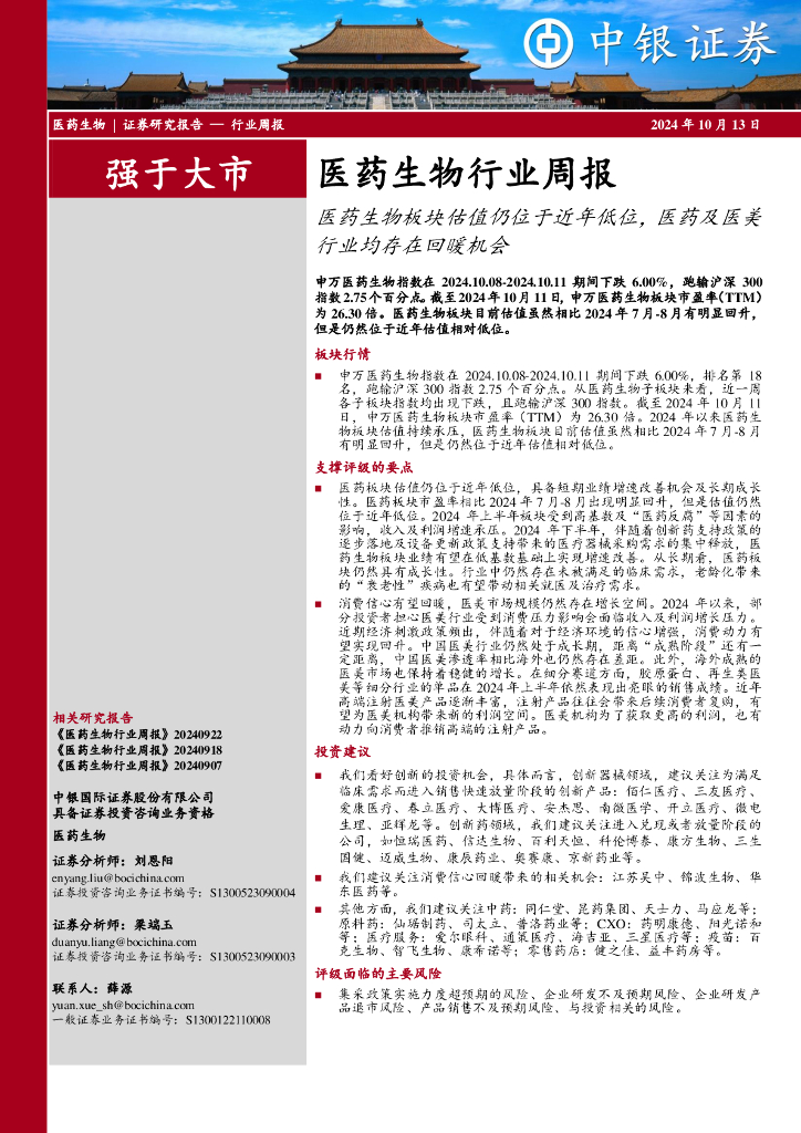 中银证券:医药生物行业周报:医药生物板块估值仍位于近年低位,医药及医美行业均存在回暖机会.pdf
