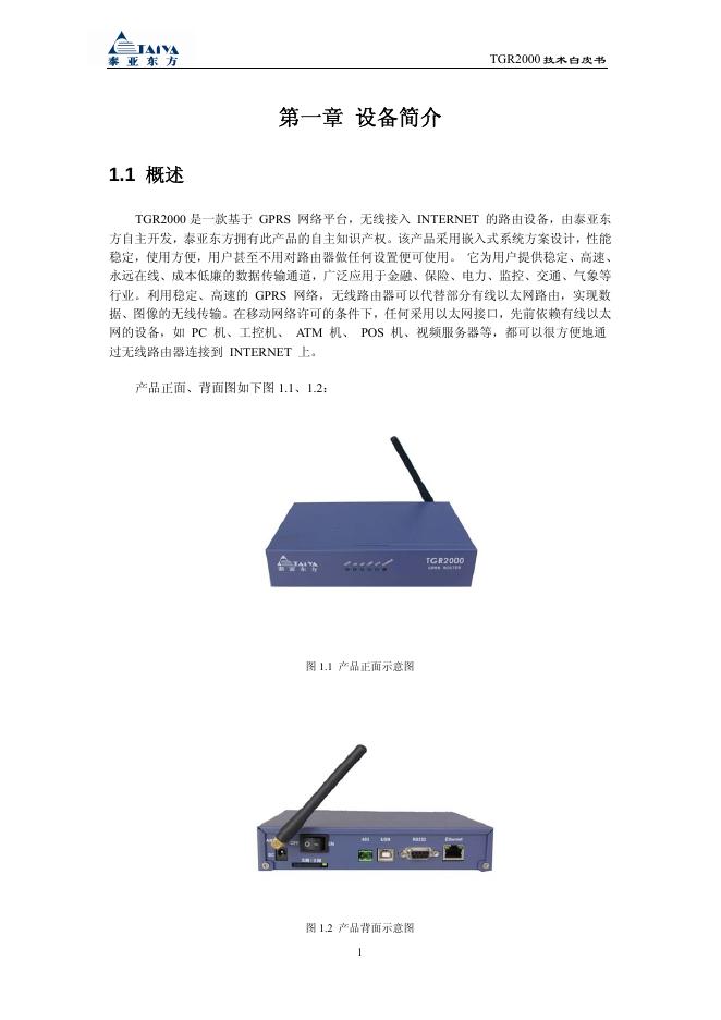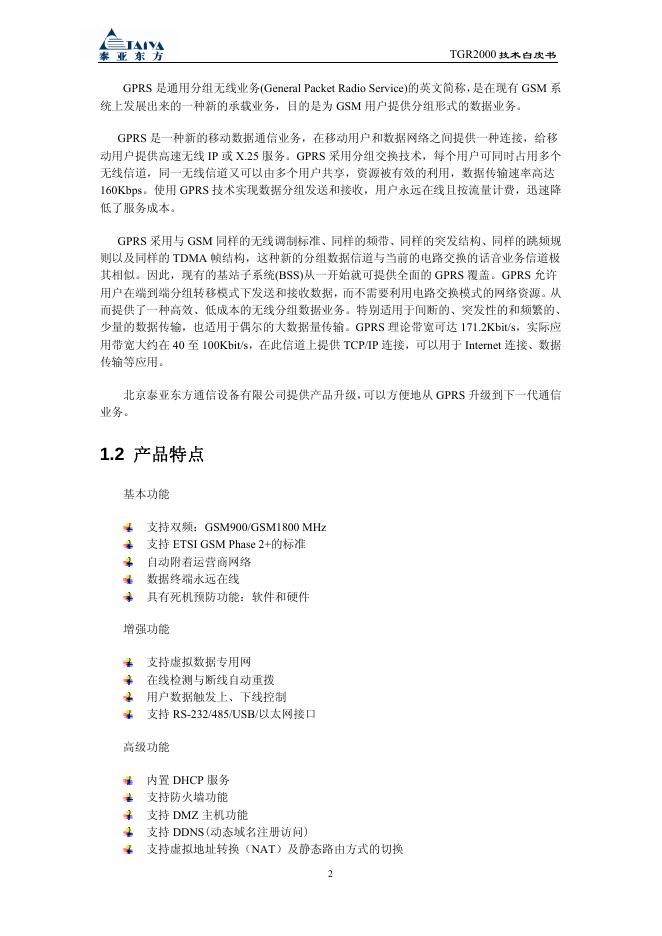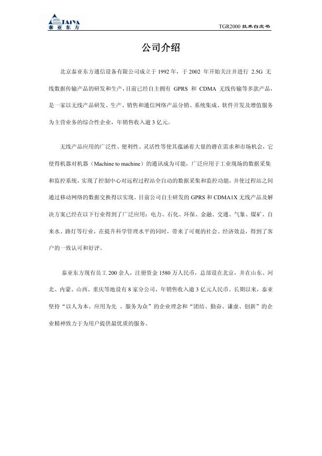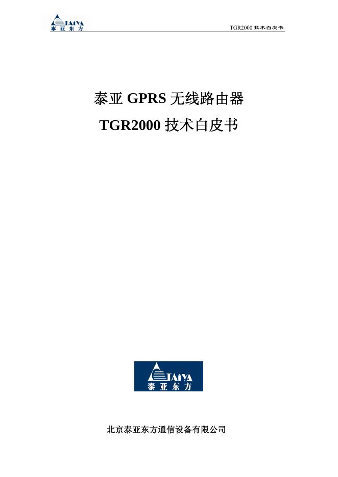 北京泰亚东方通信设备有限公司 泰亚 GPRS 无线路由器 TGR2000 技术白皮书.pdf