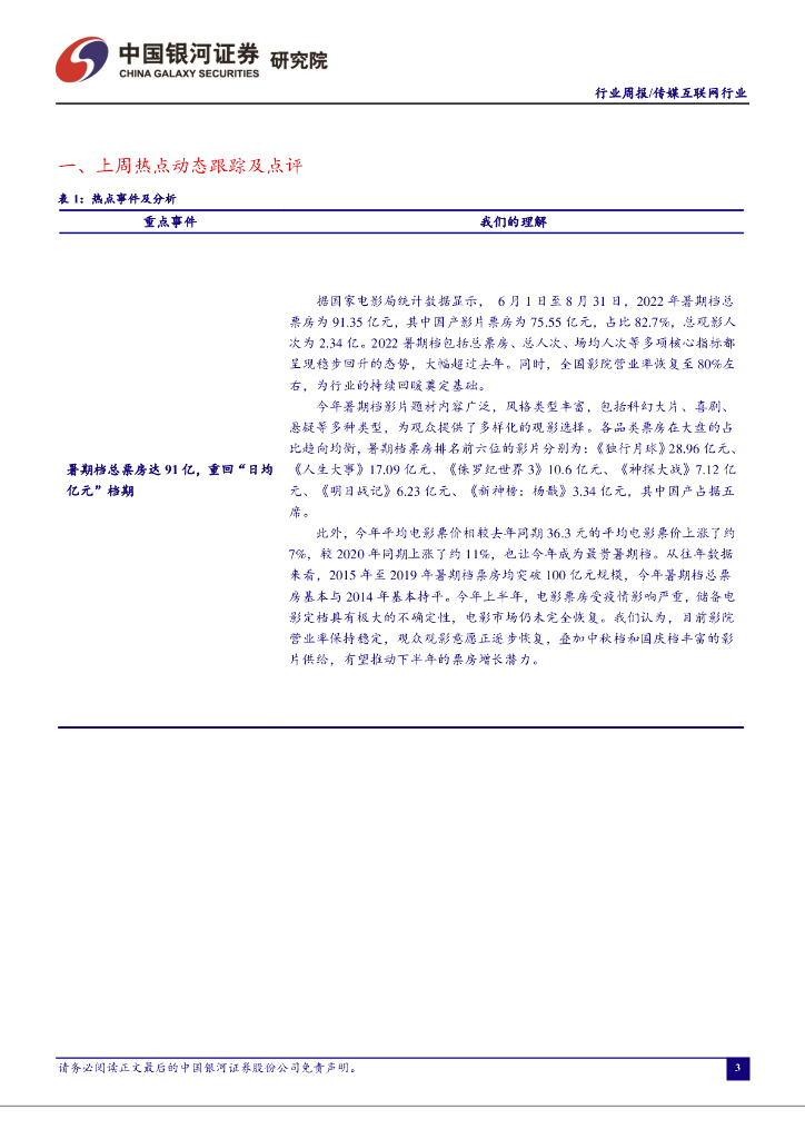 中国银河:传媒互联网行业周报:票房回暖,暑期档重回“日均亿元”.pdf