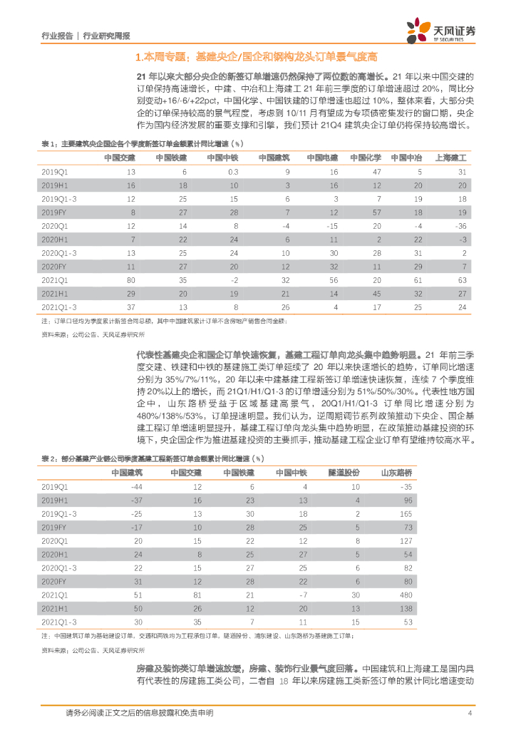 天风证券:建筑装饰行业研究周报:建筑订单趋势如何?基建央企/国企和钢构龙头订单景气度高.pdf