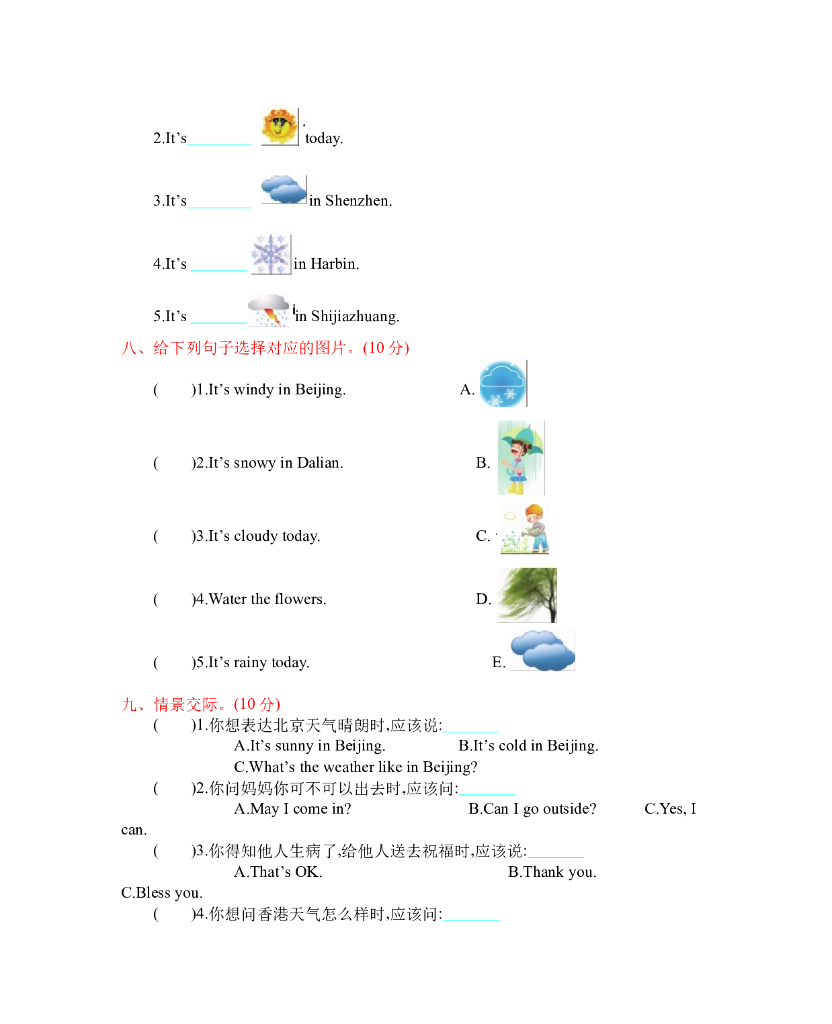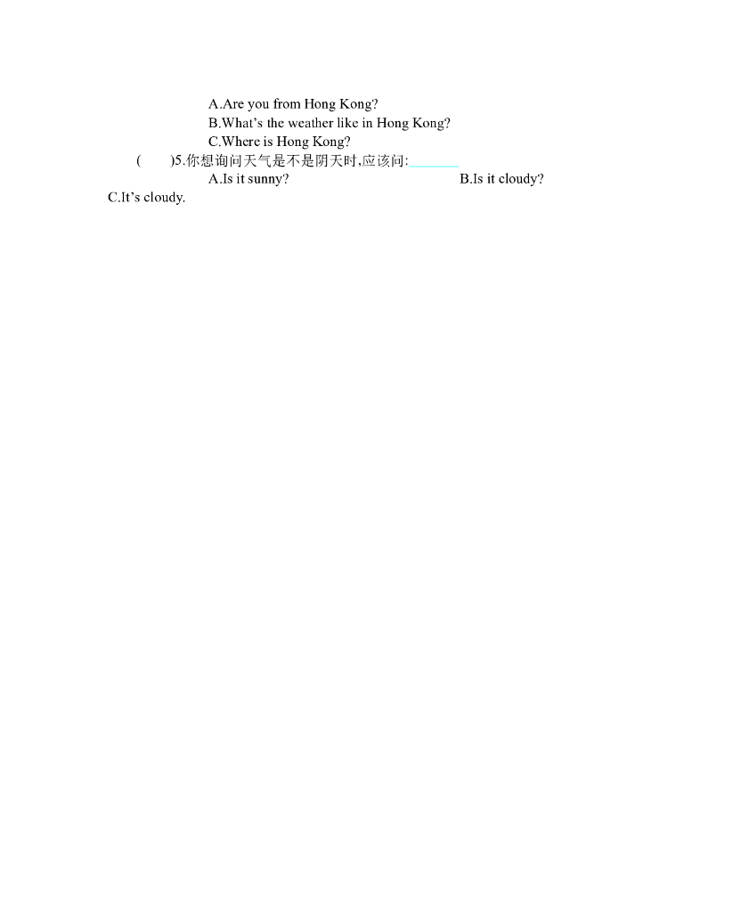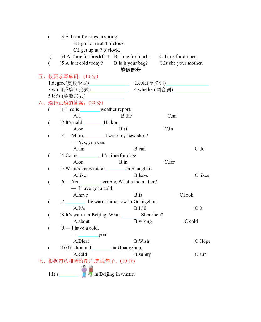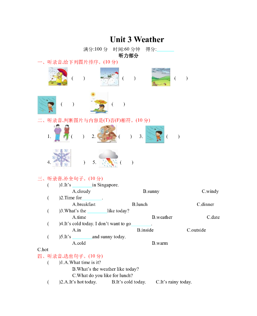 人教四下 Unit 3 单元测试卷.doc