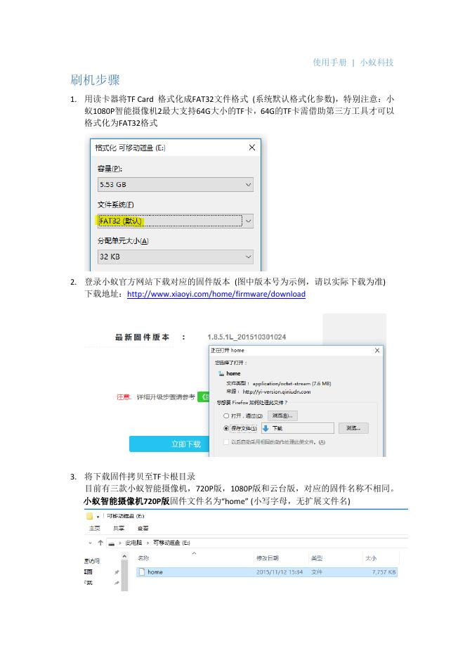 小蚁科技 小蚁智能摄像机 固件手动更新指南.pdf