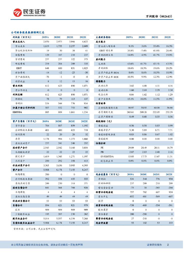民生证券:万润股份(002643)-2020年中报点评:国内业绩大幅增长,大健康产业带来新契机.pdf