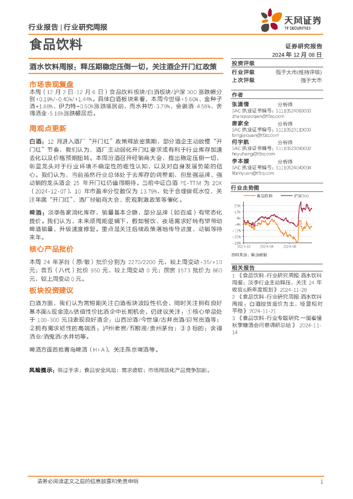 天风证券:食品饮料行业酒水饮料周报:释压期稳定压倒一切,关注酒企开门红政策.pdf