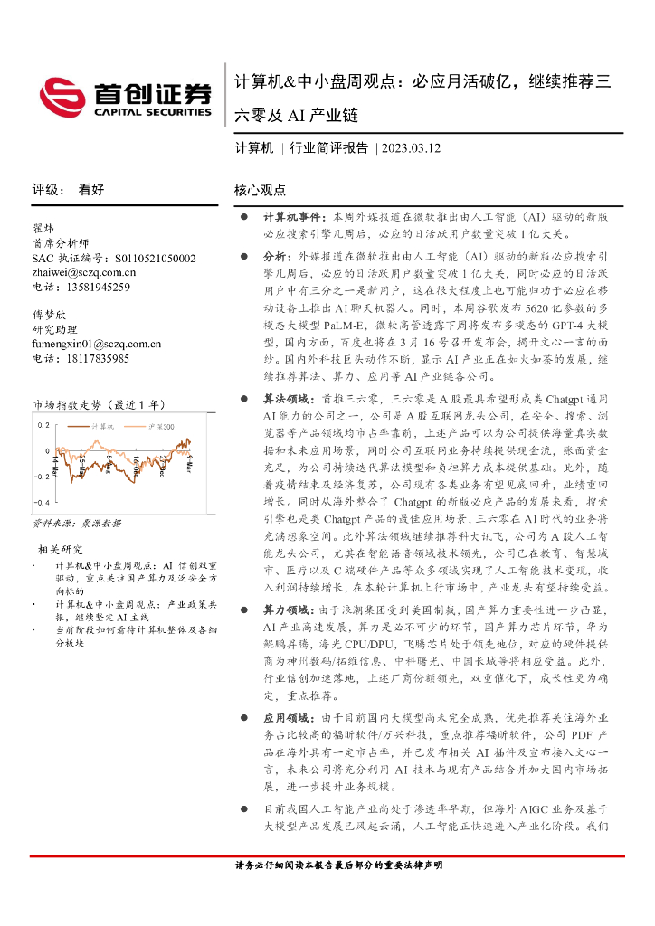 首创证券:计算机行业&中小盘周观点:必应月活破亿,继续推荐三六零及AI产业链.pdf