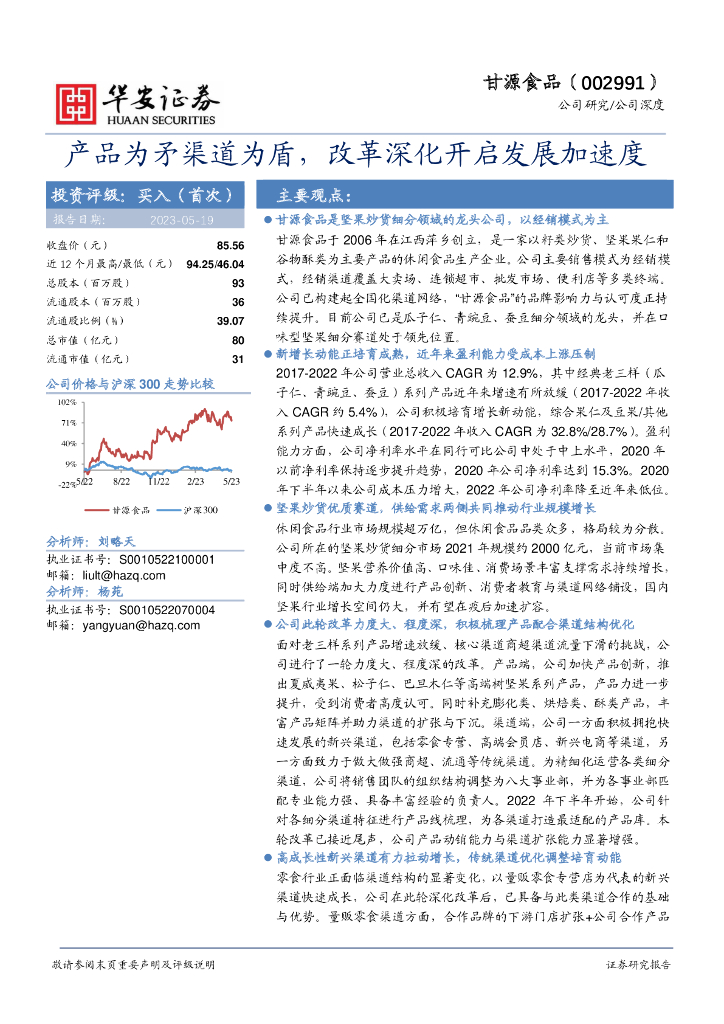 华安证券:甘源食品(002991)-产品为矛渠道为盾,改革深化开启发展加速度.pdf