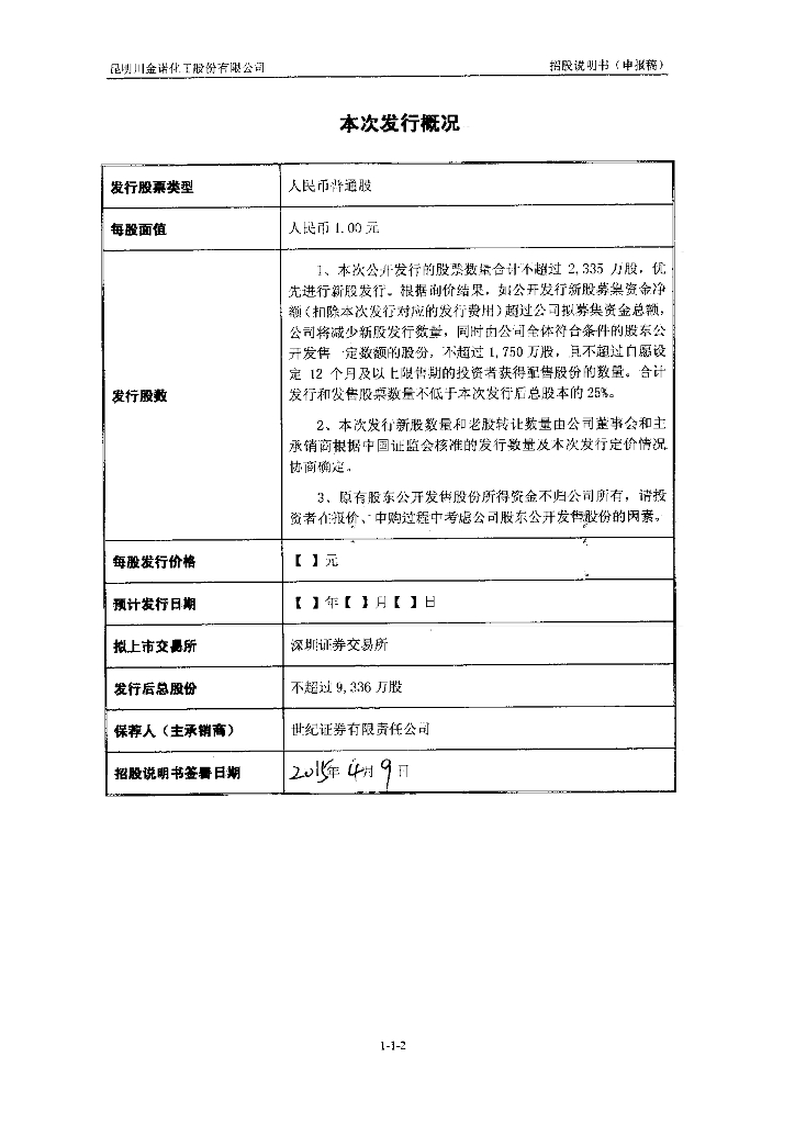 昆明川金诺化工股份有限公司深交所创业板IPO上市招股说明书.pdf
