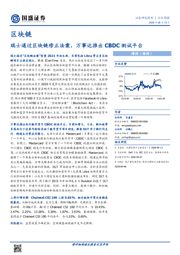 国盛证券:区块链行业周报:瑞士通过区块链修正法案,万事达推出CBDC测试平台.pdf