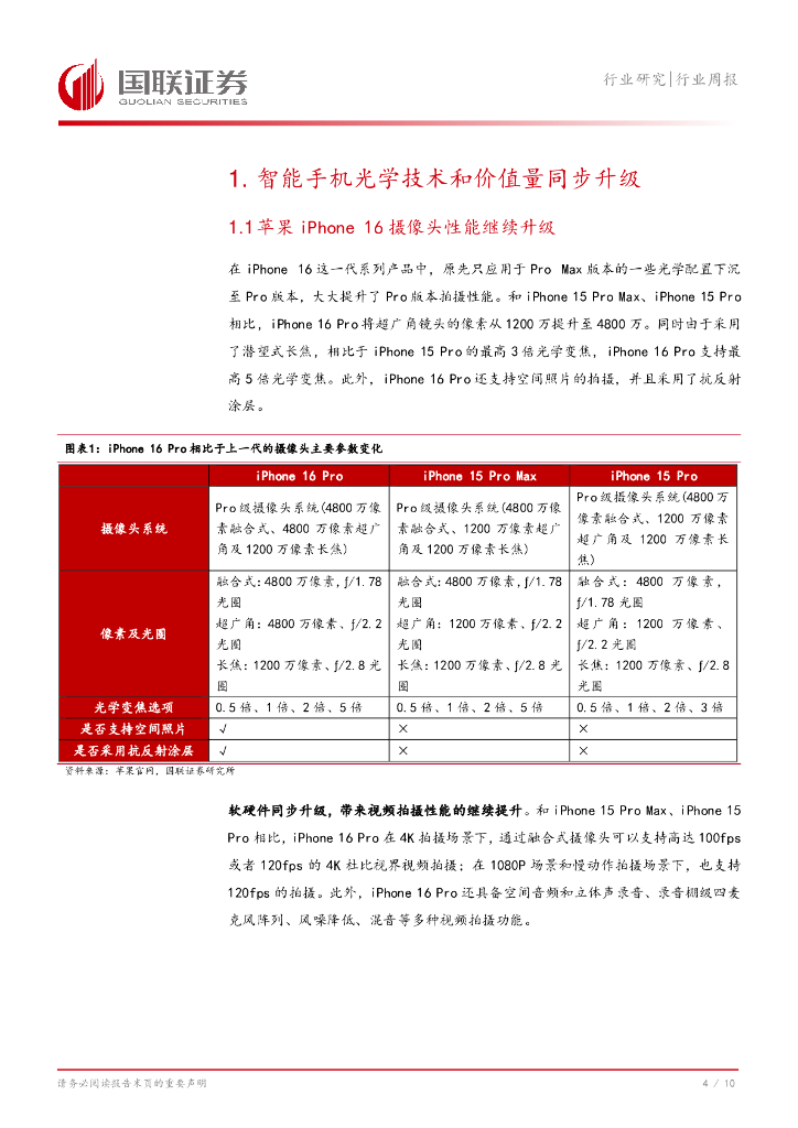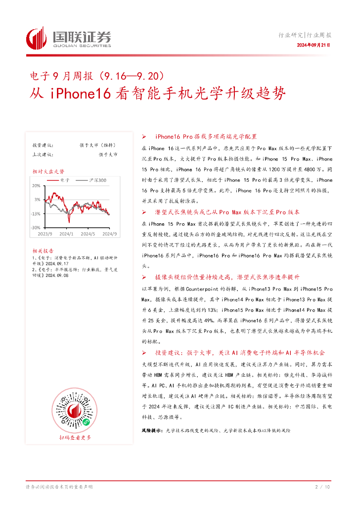 国联证券:电子9月周报:从iPhone16看智能手机光学升级趋势.pdf