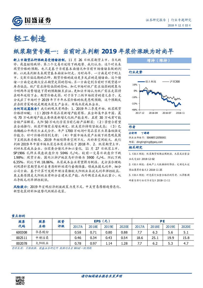 国盛证券:轻工制造行业专题研究:纸浆期货专题一:当前时点判断2019年浆价涨跌为时尚早.pdf