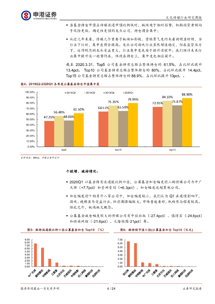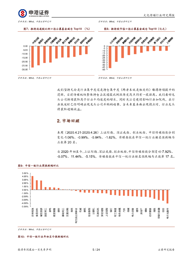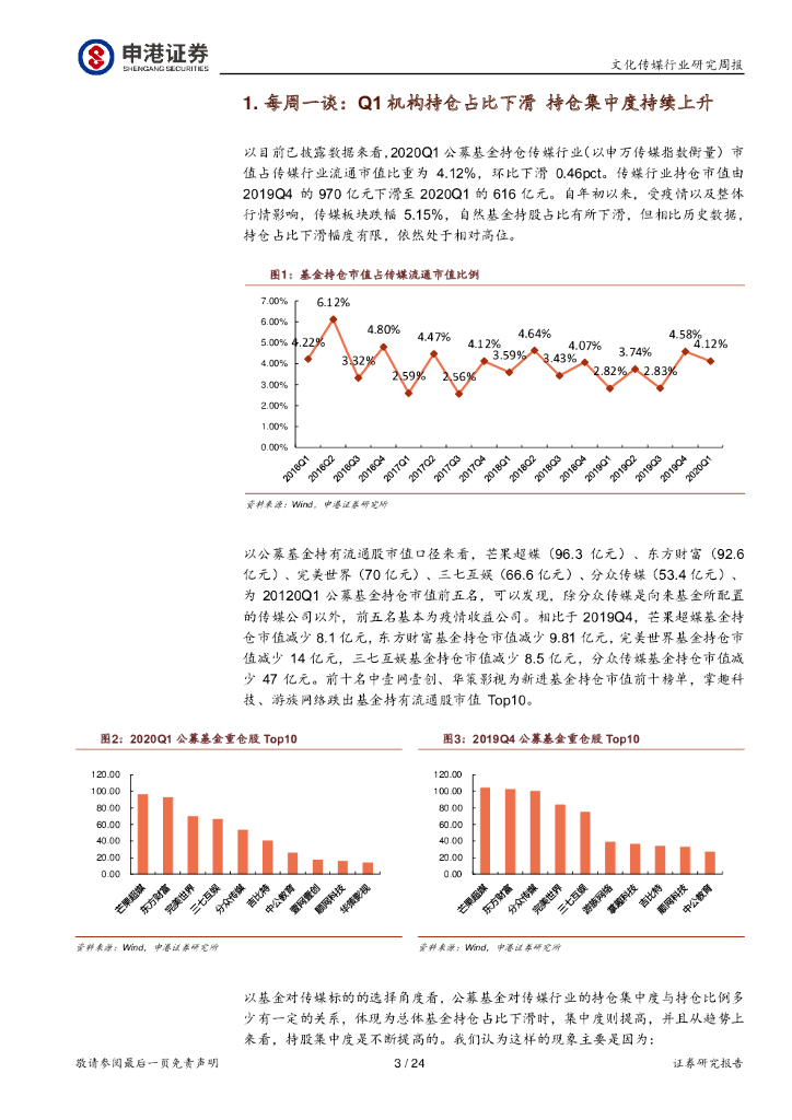 申港证券:文化传媒行业研究周报:Q1机构持仓占比下滑持仓集中度持续提升.pdf