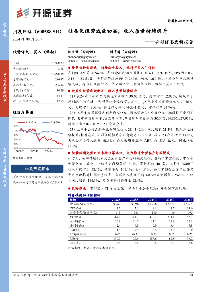 开源证券:用友网络(600588)-公司信息更新报告:效益化经营成效初显,收入质量持续提升.pdf