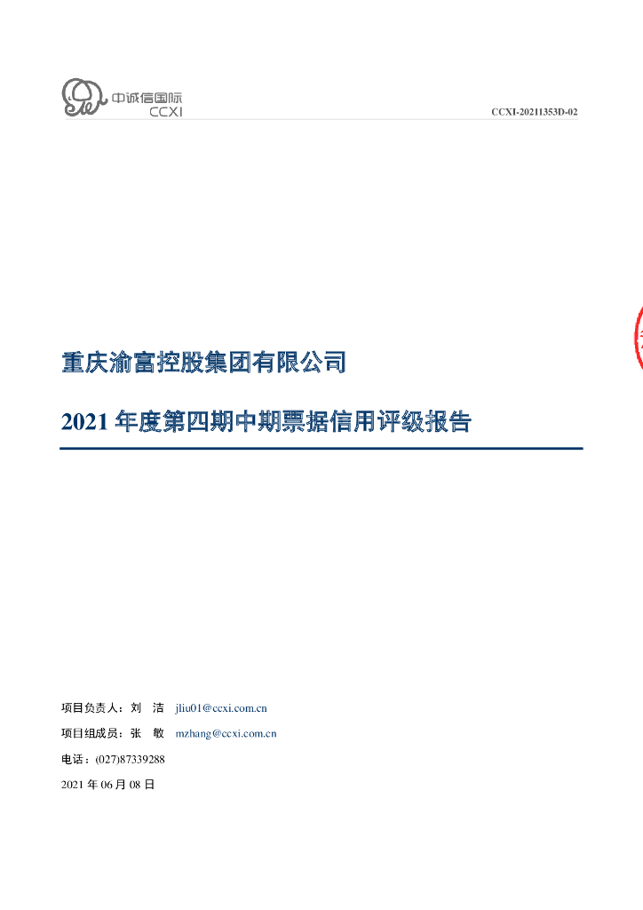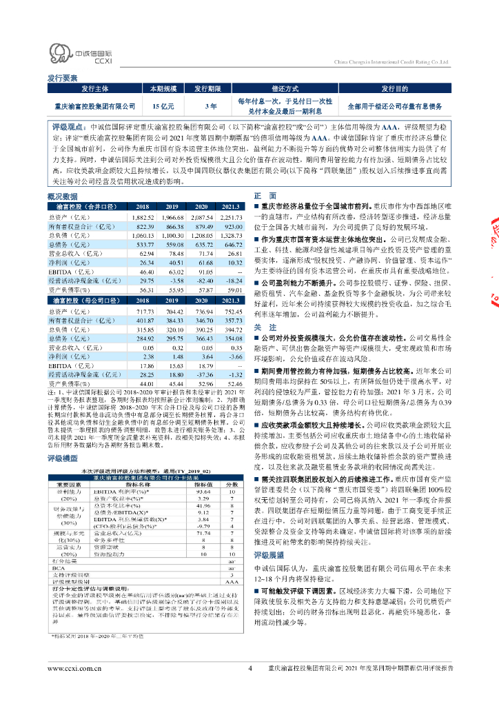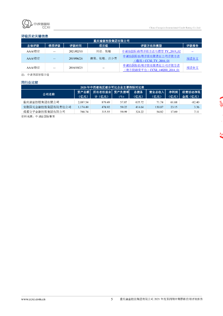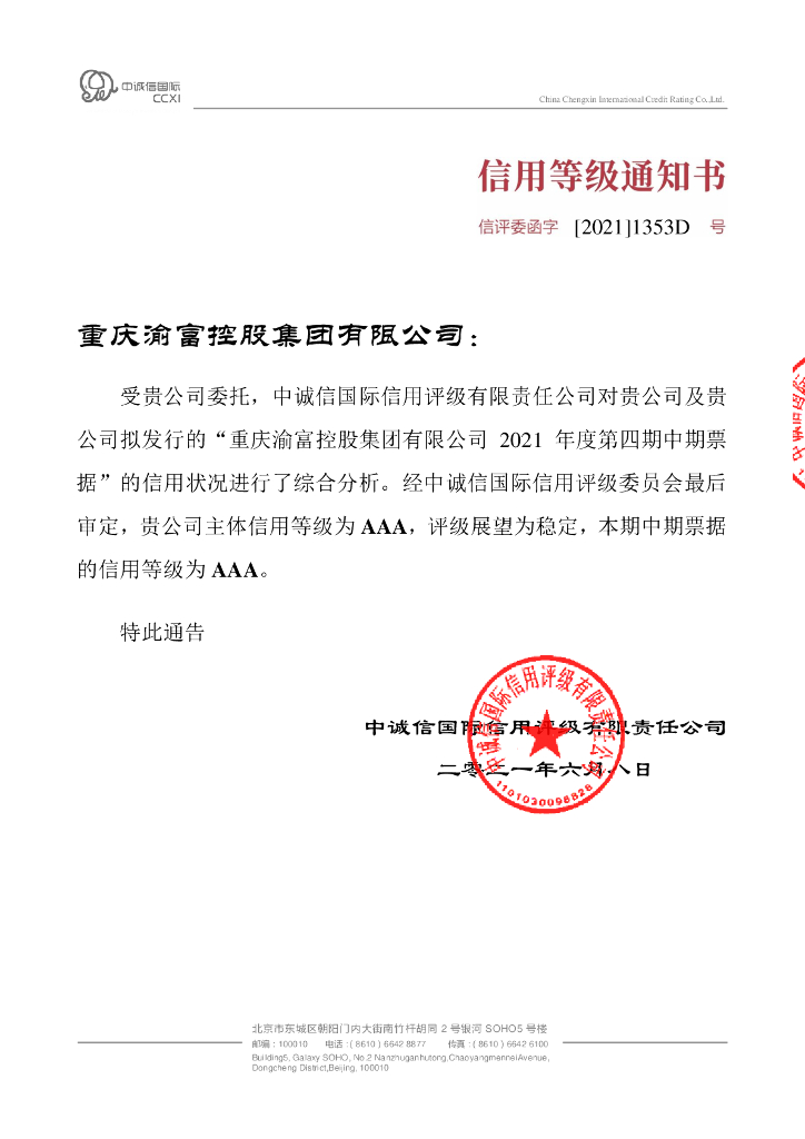 中诚信:重庆渝富控股集团有限公司2021年度主体信用评级报告及跟踪评级安排.pdf