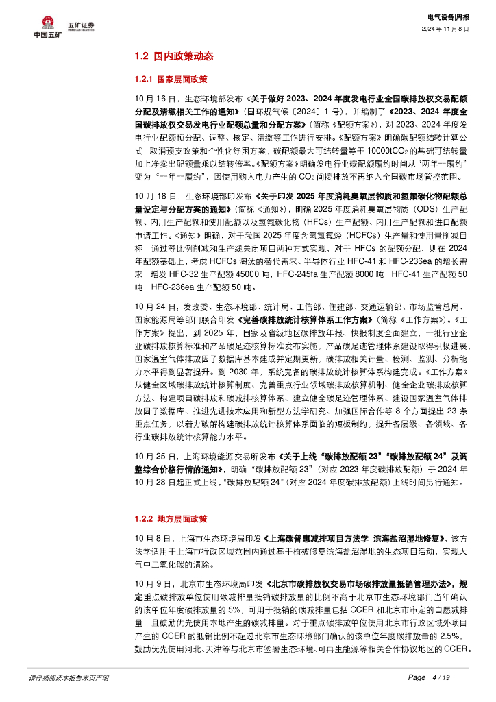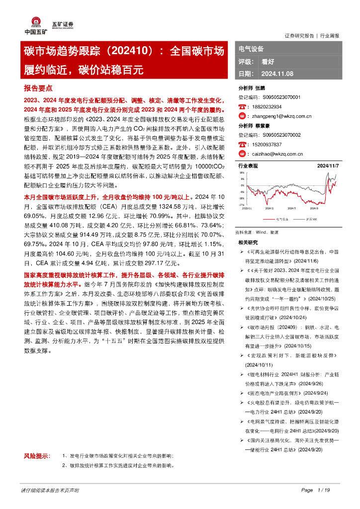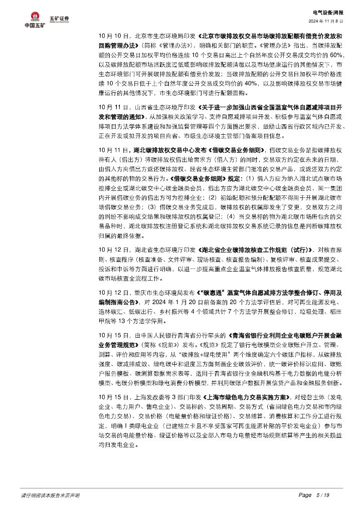 五矿证券:电气设备行业周报:碳市场趋势跟踪(202410):全国碳市场履约临近,碳价站稳百元.pdf