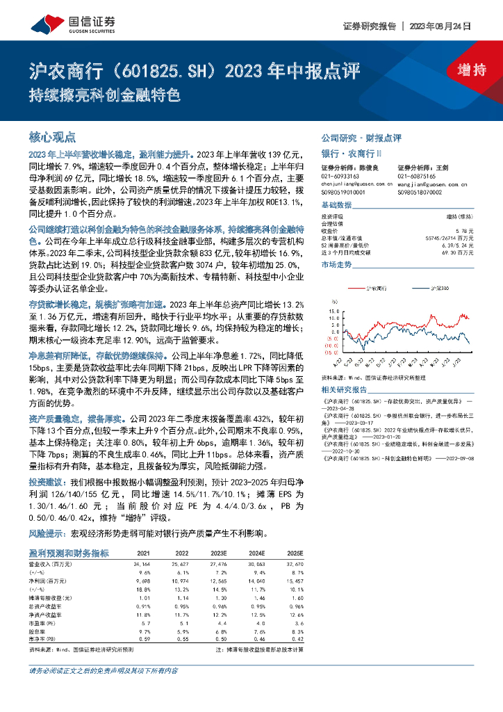国信证券:沪农商行(601825)-2023年中报点评:持续擦亮科创金融特色.pdf