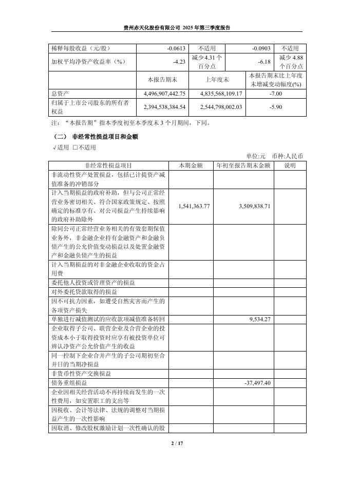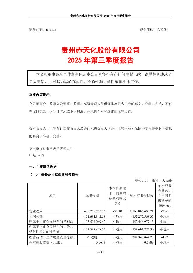 600227-赤天化:贵州赤天化股份有限公司2025年第三季度报告.pdf