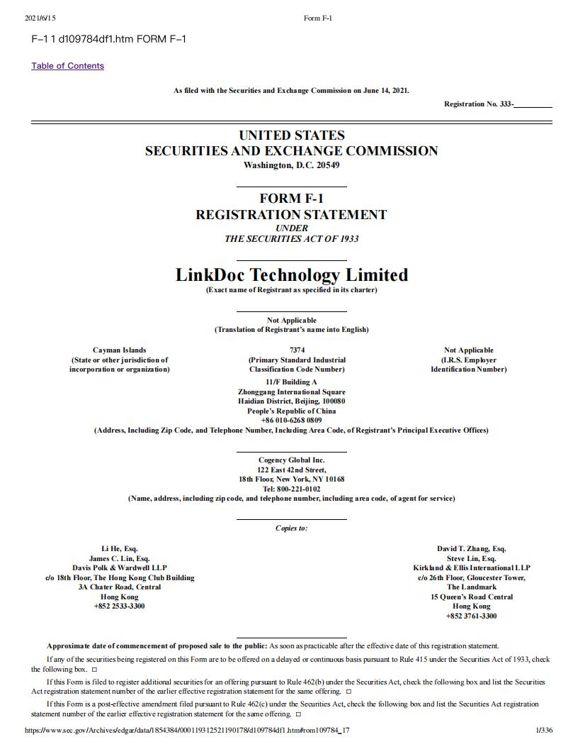 零氪科技(LinkDoc)美国纳斯达克IPO上市招股书.pdf