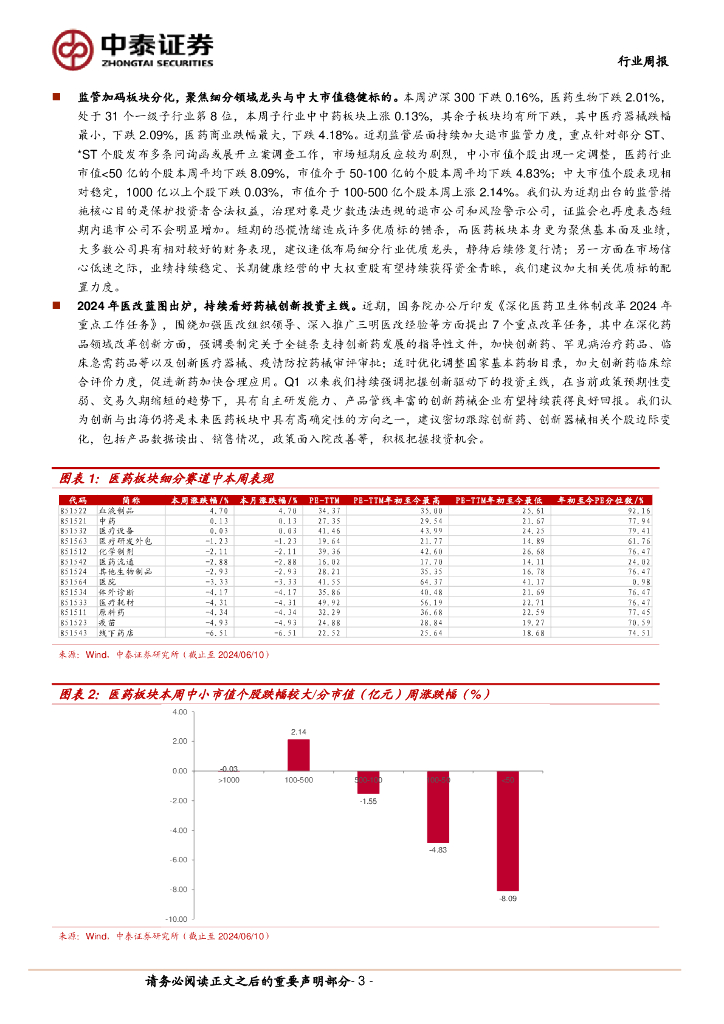 中泰证券:医药生物行业周报:监管加码板块分化,布局细分领域优质龙头.pdf