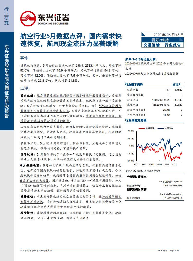 东兴证券:航空行业5月数据点评:国内需求快速恢复,航司现金流压力显著缓解.pdf