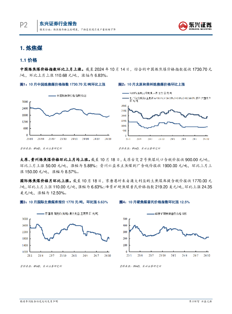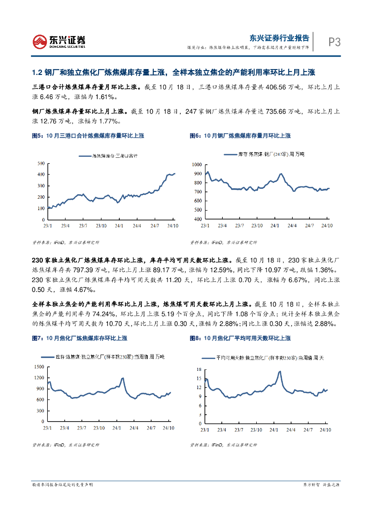 东兴证券:煤炭行业:炼焦煤价格上涨明显,下游需求端月度产量继续下降.pdf