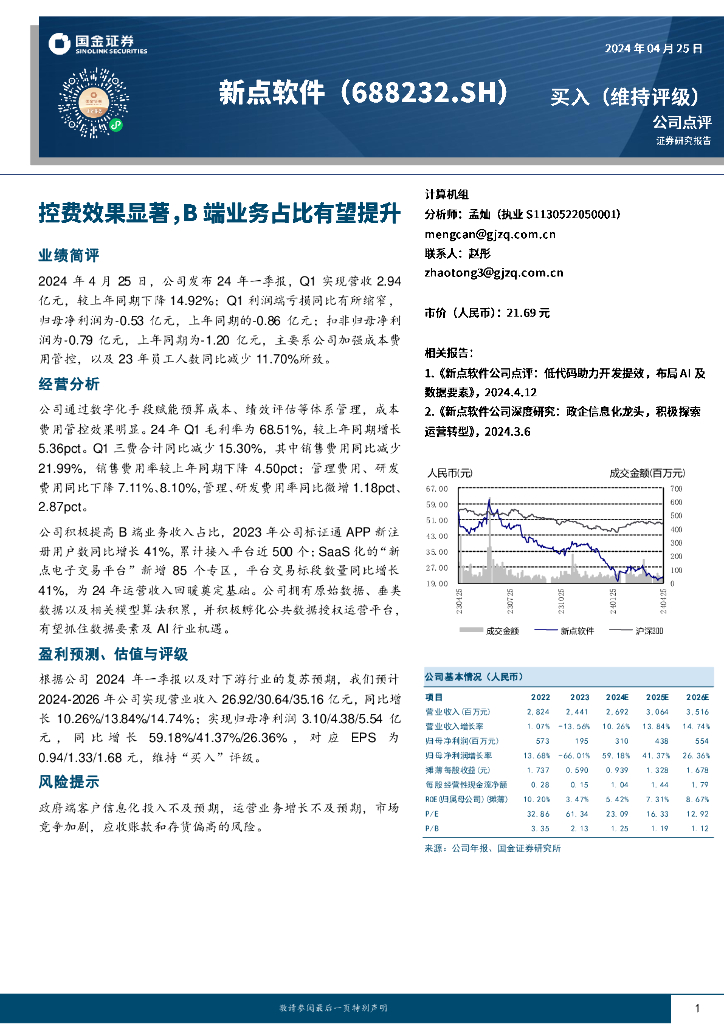 国金证券:新点软件(688232)-控费效果显著,B端业务占比有望提升.pdf
