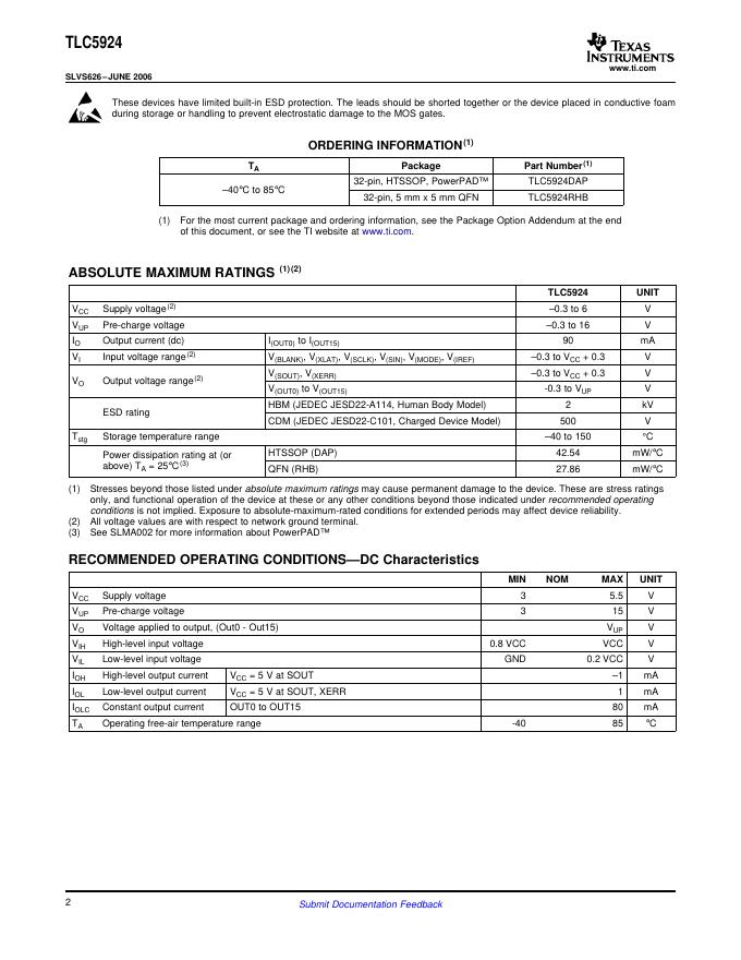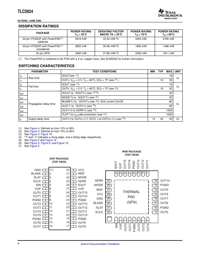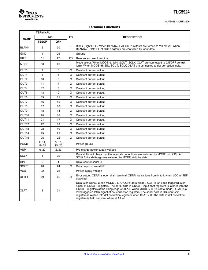 TEXAS INSTRUMENTS TLC5924 SLVS626–JUNE 2006 16-CHANNEL LED DRIVER WITH DOT CORRECTION AND PRE-CHARGE FET 数据手册.pdf