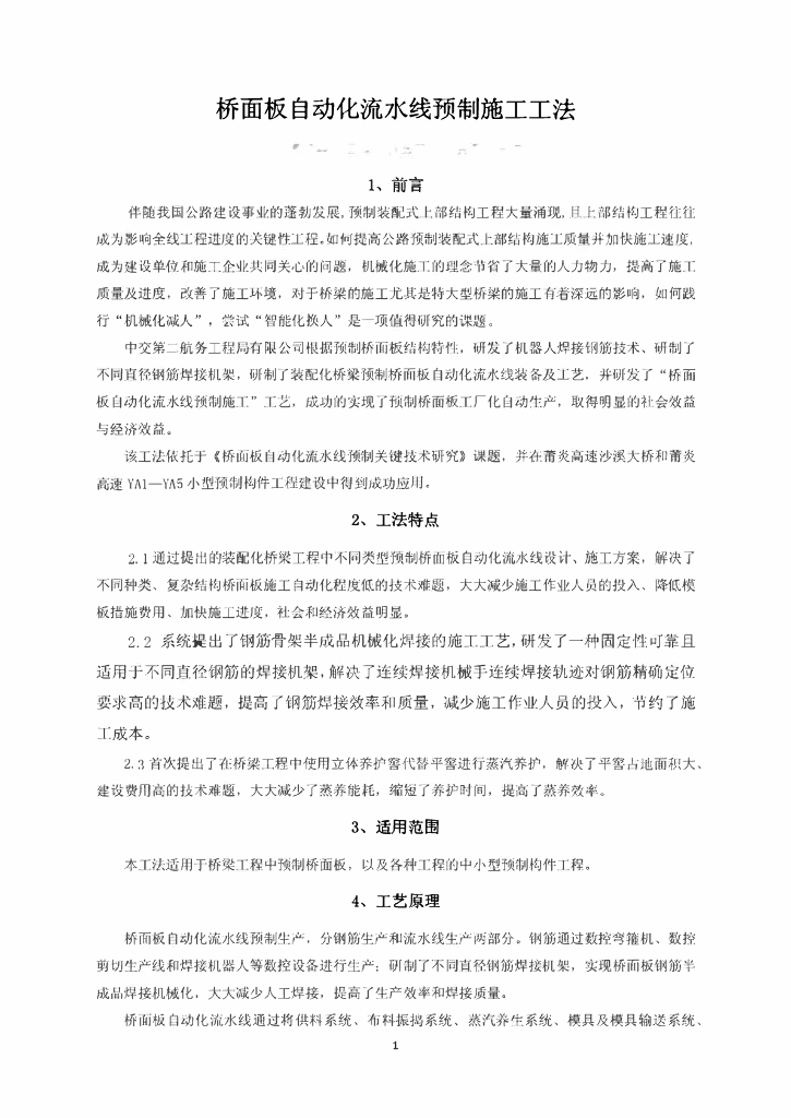 桥面板自动化流水线预制施工工法23页.pdf