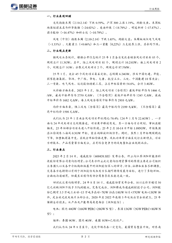 国都证券:电气设备行业周报:25年1月央企集采定标6.24GW,头部集中度提高.pdf